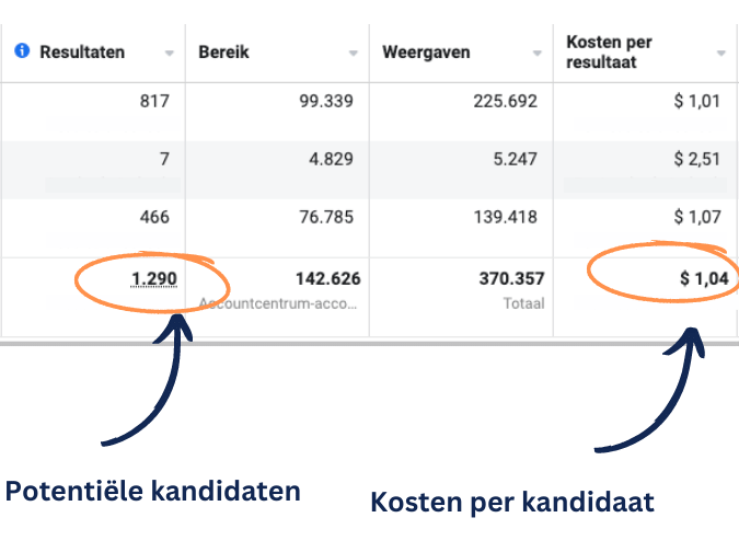 Opmerkelijk was dat de advertentiekosten op LinkedIn aanzienlijk hoger waren dan bij META. Dit leidde ook tot hogere kosten per sollicitant.